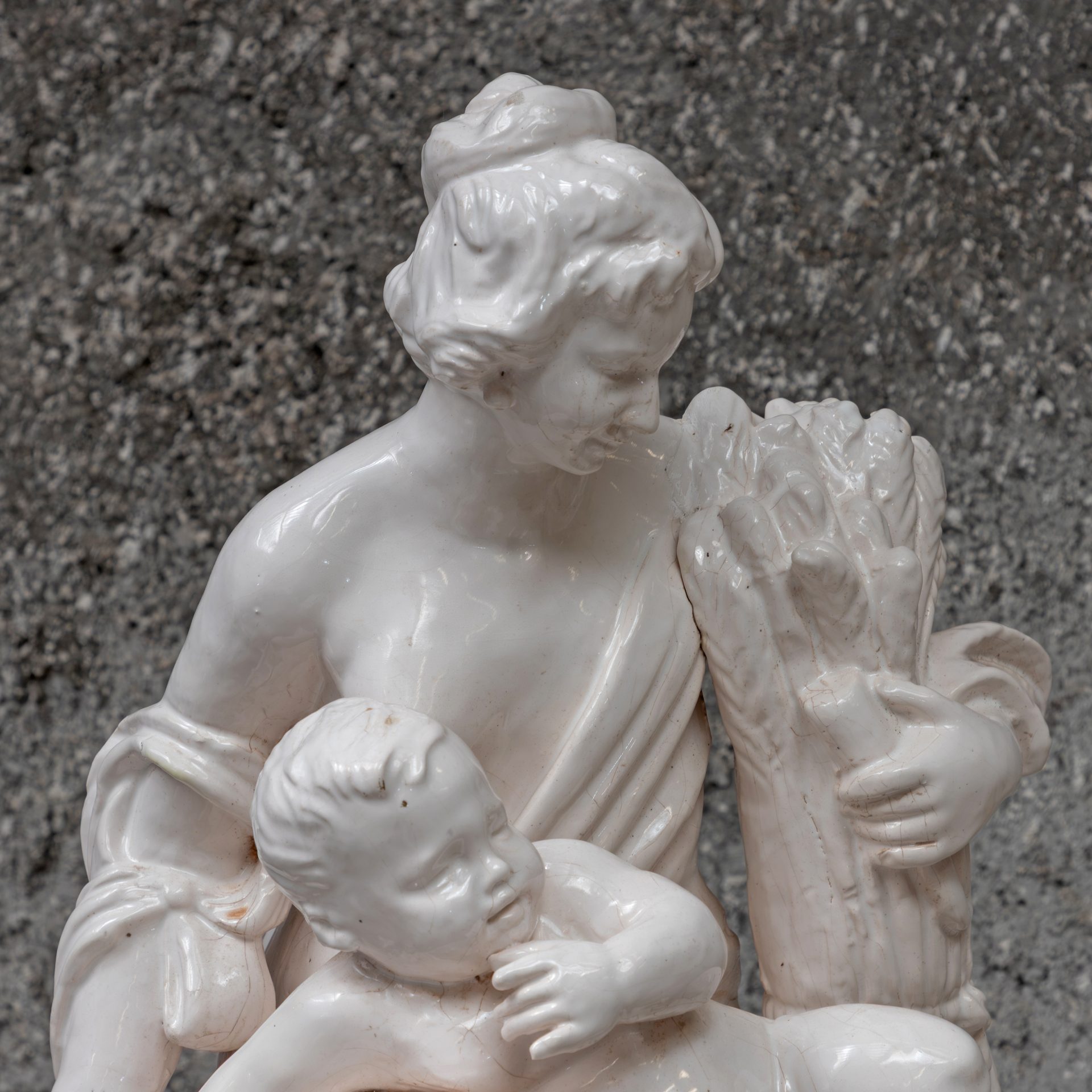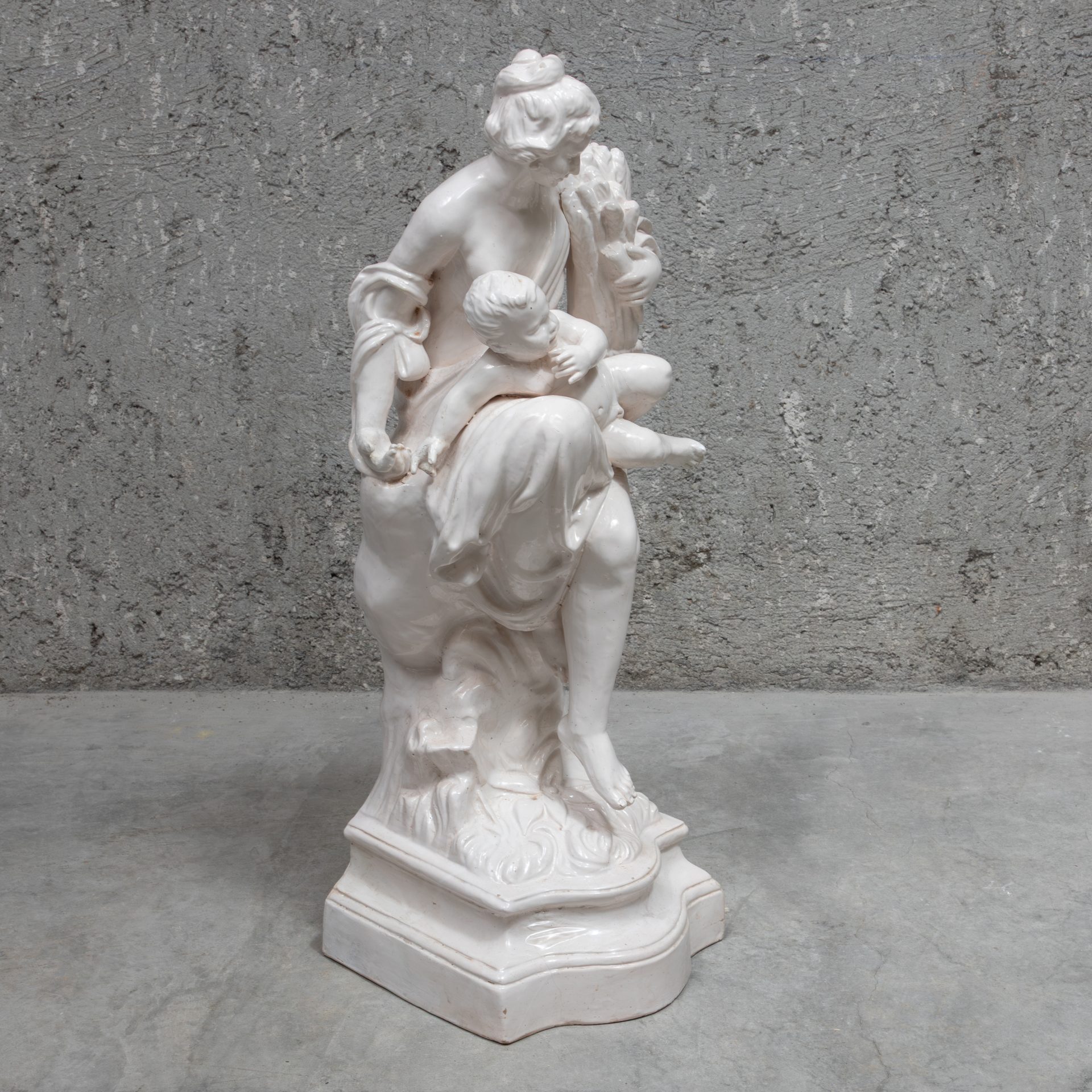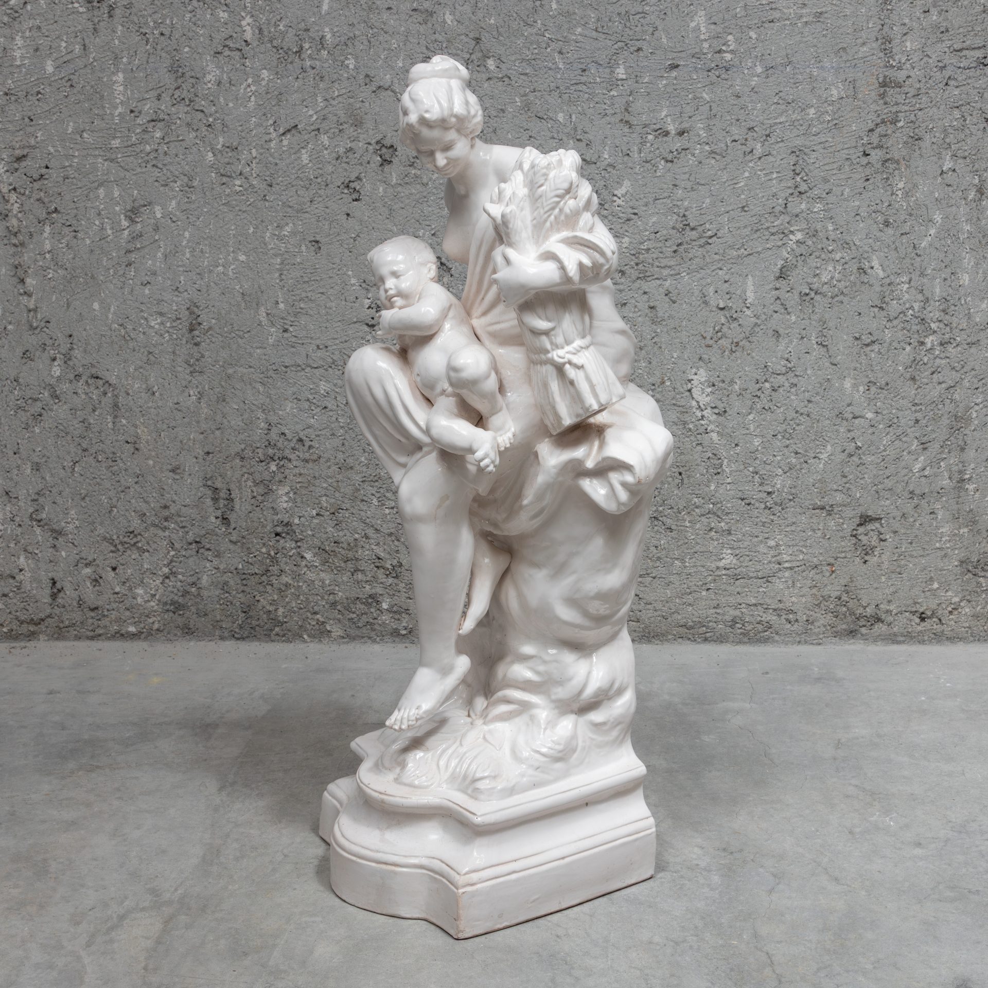 Glazed faience statue, produced at the Devezas factory in Porto in the mid-19th century.