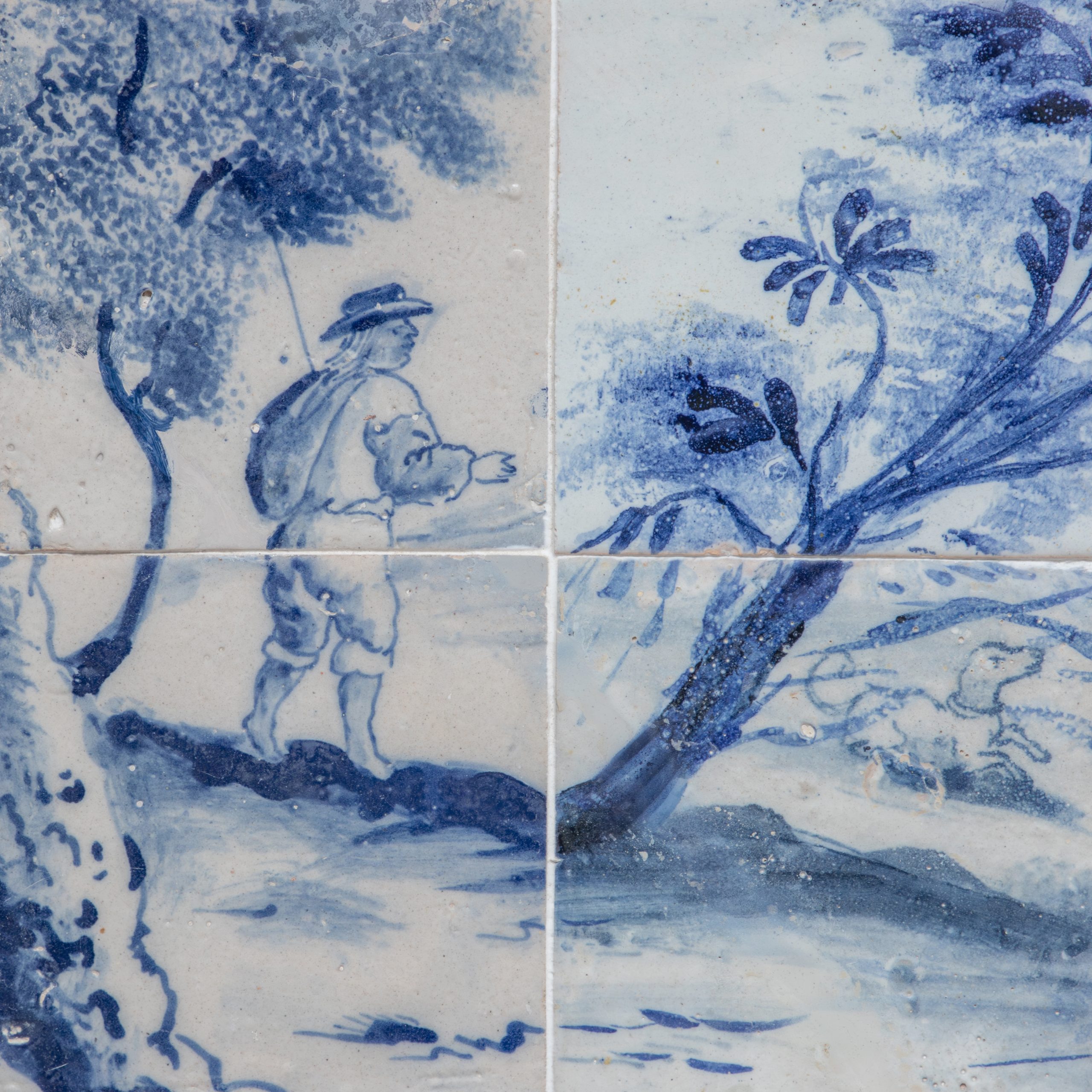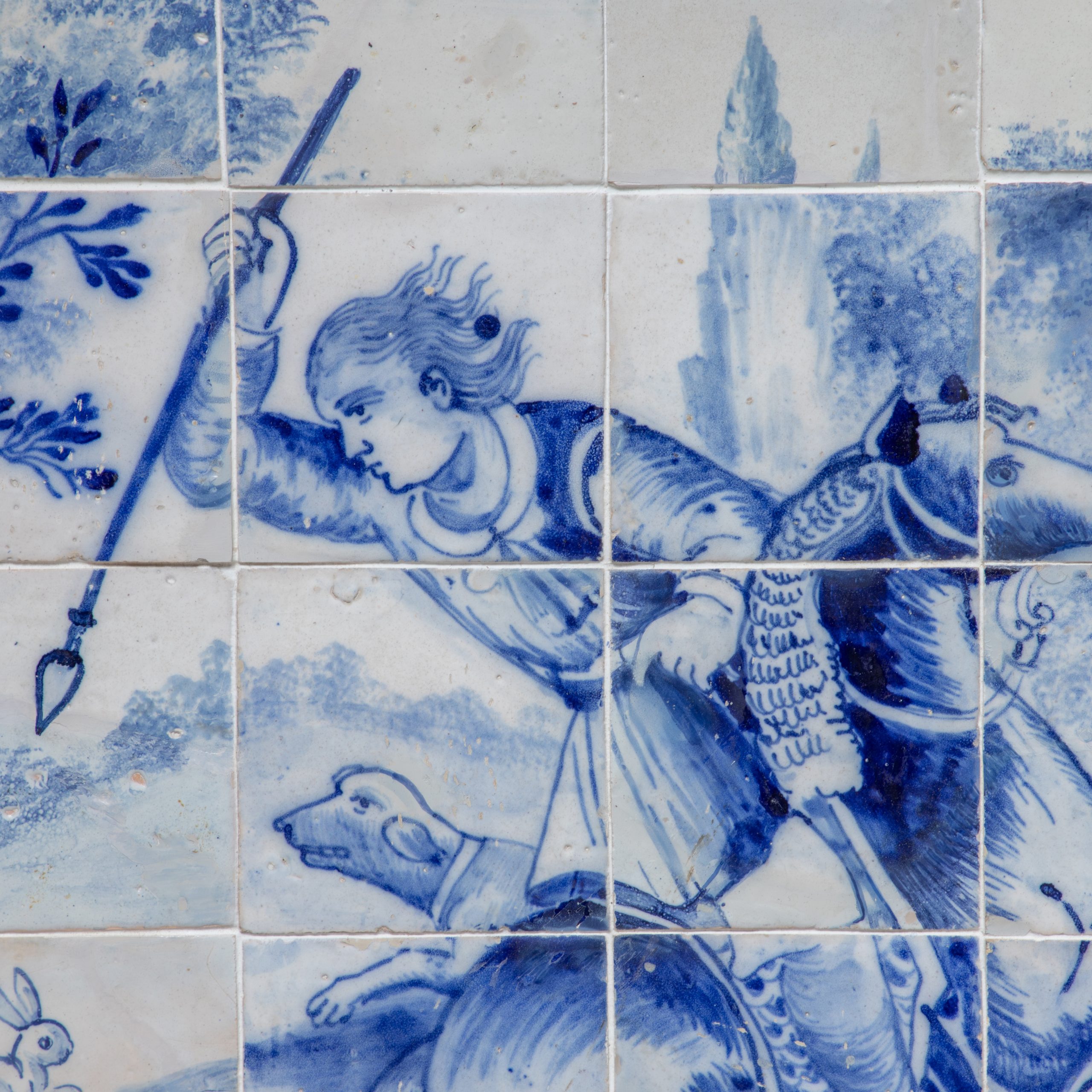 Painel figurativo do início do século XVIII, com a representação de uma cena de caça enquadrada em cercadura.